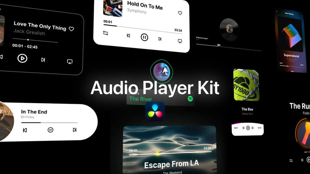 This Davinci Resolve template contains 9 uniquely designed and animated audio players. You can edit the image placeholder, logo placeholder, and text placeholders. You can use them to promote a single or entire album, podcast etc. Download it today. Available in HD.